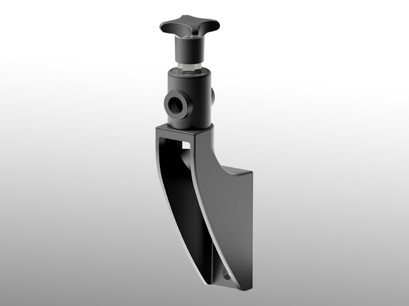 MATERIALIEN: Halterung, Kreuzgriff und Kopf aus Polyamid, glasfaserverstärkt, schwarz; Sechskant-Einsatz aus vernickeltem Messing; Zugstange mit Auge, Schraube, Mutter und Unterlegscheibe aus Edelstahl AISI 304.